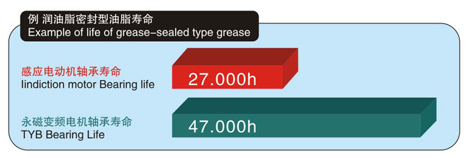 因為轉子損失非常少.所以可使軸承保持低溫.壽命延長。